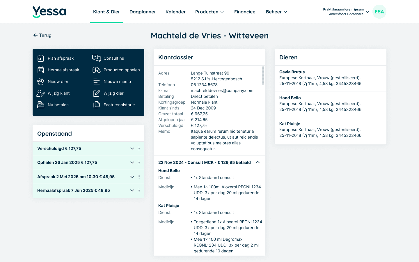 Veel dierenarts software is beperkt, omslachtig of sluit niet meer goed aan op je praktijk. Yessa is ontwikkeld als compleet managementsysteem dat je praktijk ondersteunt in de volle breedte. Van het eerste contact tot facturatie. Van werken op locatie tot rapportages op managementniveau.